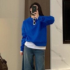 2025新款明星同款宝蓝宽松插肩袖套头无帽圆领卫衣女春秋