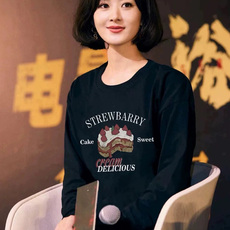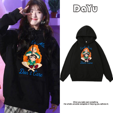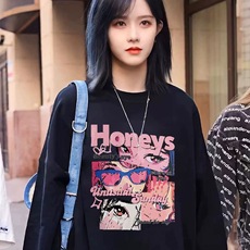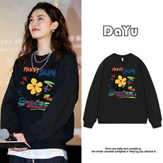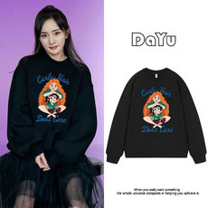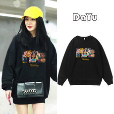 韩国小众设计感春秋卫衣宋雨琦明星同款卡通印花宽松圆领上衣女冬
