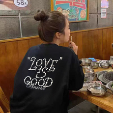 李沐宸明星同款2025秋冬新款宽松卫衣女黑色爆款小个子圆领外套潮