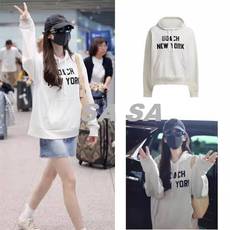 明星周雨彤同款卫衣女春秋薄款上衣韩版新款字母套头宽松情侣外套