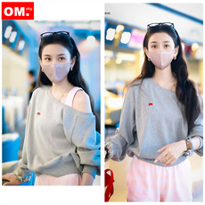 【明星同款】ANN ANDELMAN发泡印花斜领单肩卫衣女套头露肩上衣
