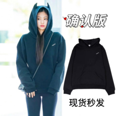 jennie明星同款小恶魔设计感美式纯棉宽松字母印花连帽卫衣女秋冬