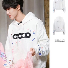 秋冬款美式傅诗淇成毅明星同款卫衣女男宽松情侣连帽白色外套衣服