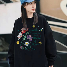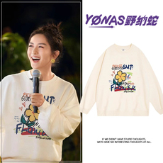 钟楚曦明星同款日系卡通花卉圆领卫衣女2025秋季新款小众设计上衣