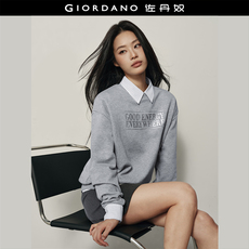 【韩国明星同款】佐丹奴美式风印花圆领宽松落肩袖卫衣女05325838