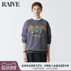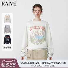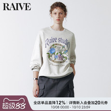 [明星同款]RAIVE秋季女印花全棉套头圆领韩休闲通勤灰玫瑰卫衣