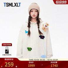 开间/明星同款chao舒适轻柔澳洲长绒棉 慵懒磨绒廓形连帽卫衣外套