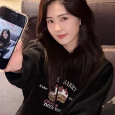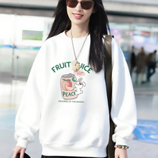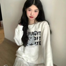 林允明星同款白色圆领卫衣女2025秋冬新款宽松加绒大码慵懒风上衣