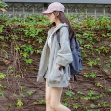 鞠婧祎同款灰色连帽卫衣女高级感慵懒风休闲宽松袖长开衫外套上衣