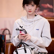 明星同款白色圆领卫衣女2025年新款爆款秋冬季宽松美式慵懒风外套