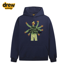 drew潮牌宋佳明星同款插画印花连帽加绒卫衣男女宽松情侣帽衫外套