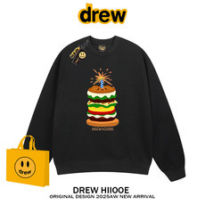 Drew宋佳明星同款高级感设计插画圆领卫衣男女休闲宽松情侣装上衣
