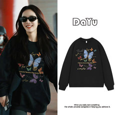 柏欣妤明星同款黑色圆领卫衣女2025秋冬季新款爆款时尚洋气上衣服