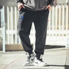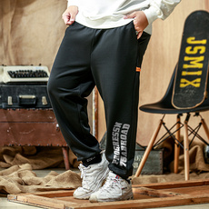 大码潮牌男装加肥加大码宽松秋冬季字母印花美式街潮运动九分卫裤
