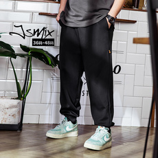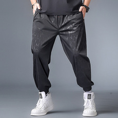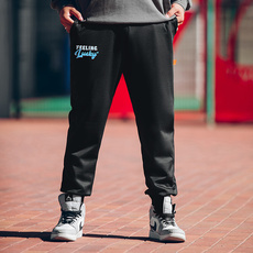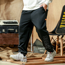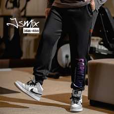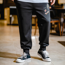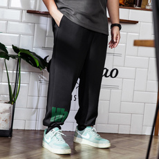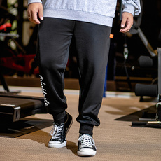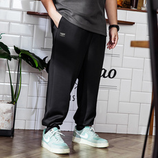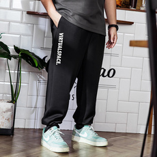 大码潮牌男装宽松版加肥加大秋冬弹力九分简约休闲字母印花卫裤