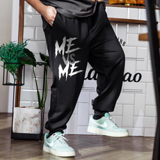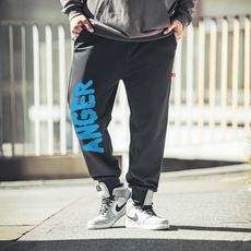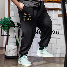 大码潮牌男装加肥加大码宽松四季款街头潮流萌趣休闲字母印花卫裤
