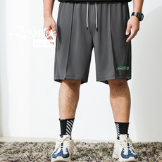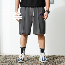 胖胖星球潮牌男装宽松直筒速干休闲五分裤镭射字母徽章轻薄短裤
