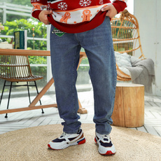 大码潮牌男装宽松直筒加大码秋冬美式街潮风撞色心形章仔牛仔长裤