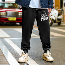 大码潮牌男装宽松加肥加大码四季美式街头风简约字母印花九分卫裤