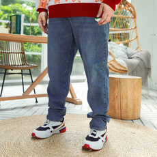 大码潮牌男装加肥加大棉质混纺休闲显瘦微弹简约纯色微弹牛仔长裤