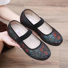 女鞋2025春夏季新款单鞋复古软底防滑增高厚底魔术贴高跟单鞋