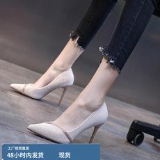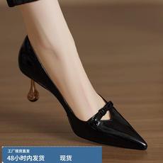 新款春夏季浅口尖头单鞋时尚增高靓丽洋气女士高跟鞋走秀款小皮鞋