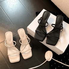 法式露趾方头细带夏季细高跟拖鞋2025早春夏新款一脚蹬优雅女凉鞋