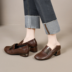 时尚外穿方头高跟半拖鞋2024春夏新款女鞋复古粗跟穆勒包头拖鞋女