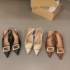 漆皮银色尖头高跟包头半拖鞋女外穿2025春夏新款皮带扣细跟穆勒鞋