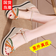 大牌春夏季新款新款真皮凉鞋女韩版松糕厚底高跟坡跟外穿凉鞋女