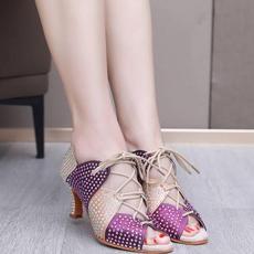 2025春夏季新款水钻珍珠流苏一字带凉鞋粗跟仙女风水晶凉拖鞋高跟