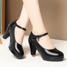 春夏新款高跟走秀鞋婚礼宴会优雅女士单鞋跳舞浅口粗跟防水台女鞋