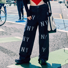 MLB官方 女款时尚休闲牛仔裤刺绣LOGO阔腿长裤春夏DPB05