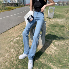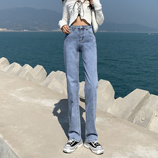 浅色高腰直筒牛仔裤女2025年春夏新款显瘦弹力小个子烟管长裤爆款