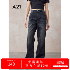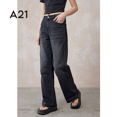 A21女装宽松中腰阔腿牛仔长裤春夏季美式vibe潮牌复古做旧直筒裤