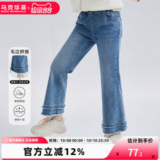 【新品优选】马克华菲女童喇叭裤毛边牛仔长裤春夏裤子儿童阔腿裤