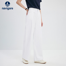 Navigare意大利小帆船牛仔裤女春夏不易褪色阔腿裤休闲中腰长裤子