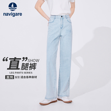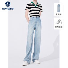 Navigare意大利小帆船休闲牛仔裤女25春夏新品水洗显瘦直筒长裤子
