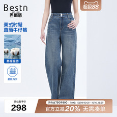 百斯盾女装牛仔裤2025年春夏新款美式时髦双排扣显高显瘦直筒长裤