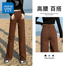 KZH真维斯咖色牛仔裤女春夏新款宽松直筒裤简约高腰显瘦阔腿长裤