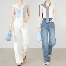 ZETdesZET/己也 2025春夏新款阔腿牛仔裤简约白色长裤女