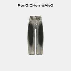 【明星同款】FengChenWang25春夏黑白渐变做旧牛仔长裤男女同款