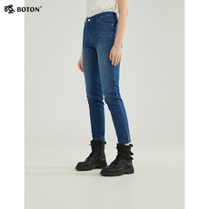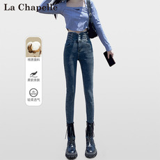 拉夏贝尔时尚铅笔裤牛仔裤女2025春夏新款气质高腰显瘦简约长裤女