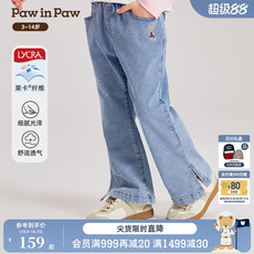 PawinPaw小熊童装春夏女童贴布印花微喇牛仔长裤软牛仔