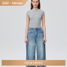 Fabrique 斜缝拖地复古阔腿牛仔裤女春夏新款宽松毛边长裤