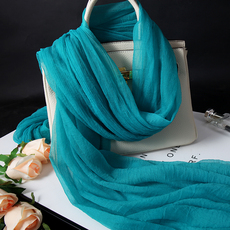 桑蚕丝围巾披肩外搭女2026新款真丝丝巾长褶皱春季防晒拍照孔雀蓝