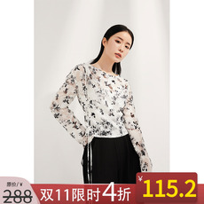 NANASTORE雪纺衫女2024春季新款长袖T恤上衣圆领宽松碎花小衫短款