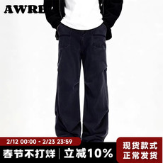 Dream made 美式休闲长裤男款春秋季直筒阔腿工装裤男生弯刀裤子