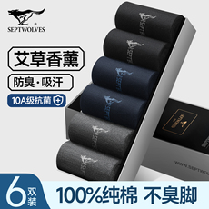 七匹狼袜子男士纯棉全棉吸汗防臭10A抗菌黑色男款中筒袜春秋冬季
