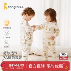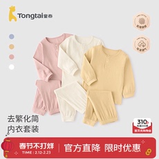 童泰宝宝内衣套装春秋季男童女童衣服家居服分体睡衣秋衣秋裤坑条